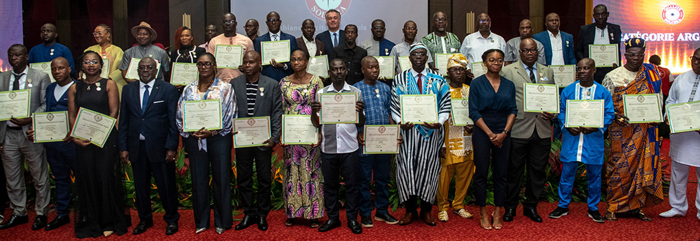 La remise solennelle des Médailles d’Argent, Vermeil, Or et Grand Or a été effectuée par M. Kassoum Coulibaly, Inspecteur Général de l’Emploi et de la Protection Sociale, représentant Monsieur Adama Kamara, Ministre de l’Emploi et de la Protection Sociale.