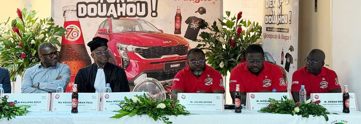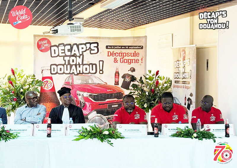 La Société de limonaderie et de boissons rafraîchissantes d'Afrique ( SOLIBRA), leader dans la production et la commercialisation de bière et de boissons gazeuses en Côte d'Ivoire, a lancé officiellement le lundi 14 juillet 2025 à son siège à Abidjan, " Decap's Ton Douahou " , un jeu concours à travers sa marque Word Cola.