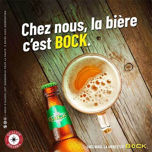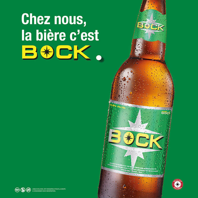 BOCK est la marque de bière préférée des ivoiriens depuis plusieurs générations. Elle accompagne depuis des décennies, les moments importants de la vie des ivoiriens aussi bien au village qu’en ville. Son faible taux d’alcool et son goût unique en font la bière idéale des rencontres entre amis, au village comme en ville. C’est une bière économique qui se boit à tout moment de la journée. Elle est disponible en bouteille, en verre consignée, en verre perdu et en canette. Elle est certes la bière de l’Homme Fort, mais aussi celle de tous les ivoiriens car en Côte d'Ivoire la Bière c’est BOCK.