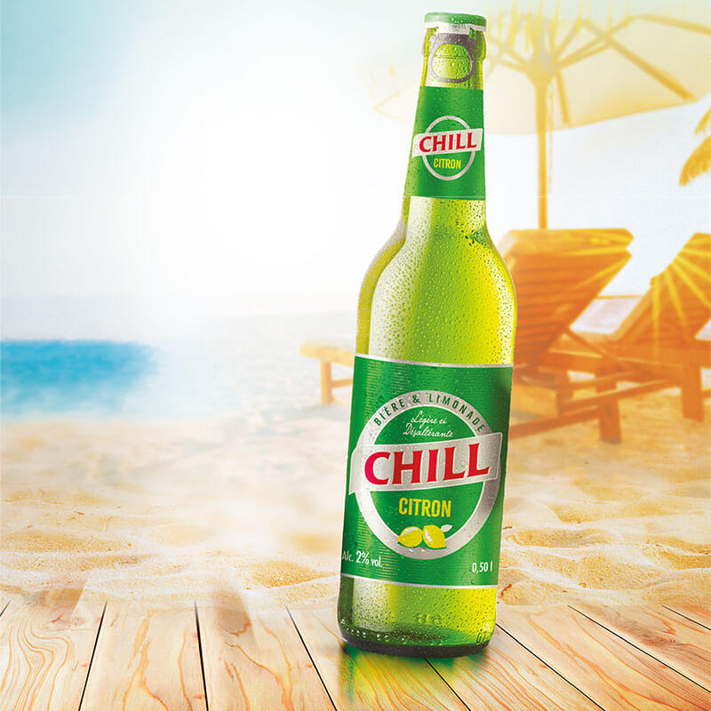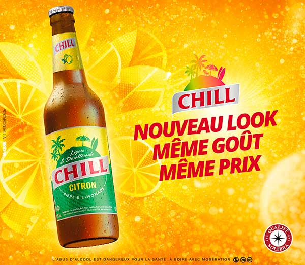 CHILL est une marque bière légère (faiblement alcoolisée 2%) et aromatisée au citron qui s'adresse à une cible jeune !