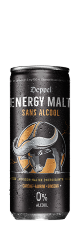 DOPPEL ENERGY MALT est la nouvelle marque de boisson énergisante de la SOLIBRA, avec 0,0 % d'alcool et 100...