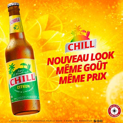 CHILL est une marque bière légère (faiblement alcoolisée 2%) et aromatisée au citron qui s'adresse à une cible jeune !